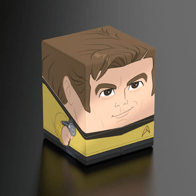 Collectible box for storing TCG decks, tabletop gaming accessories, and/or collectibles. The Captain Kirk Squaroe from the Star Trek: The Original Series edition holds up to 100 cards in double protective sleeves if used as a deck box. Squaroes are made from 78% renewable resources and fit perfectly into the separately available Collectors Case.