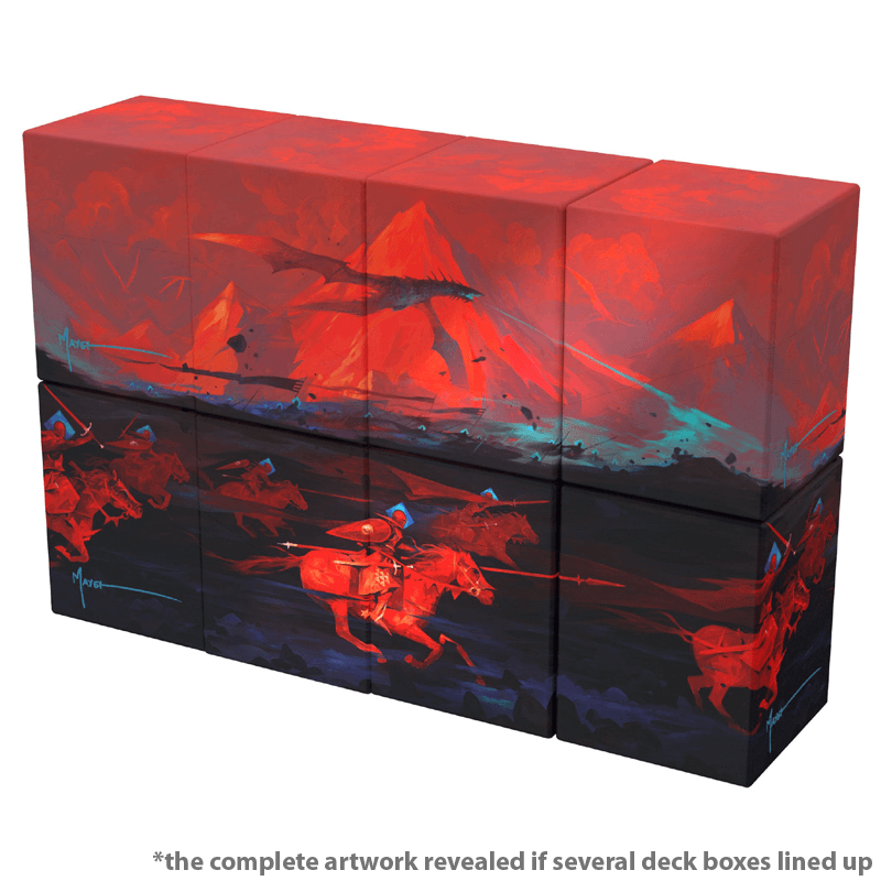 Illustrated by Dominik Mayer, one of Magic: The Gathering's most beloved artists, our 2024 Exclusives are true works of art. Finished with a durable and vibrant full colour print, each deck box offers space for 100 double-sleeved cards. The RTE Boulder 100+ is made from 78% renewable resources in Germany. If you combine several deck boxes together, you can reveal the complete artwork: a sinister look into a world of knights and dragons!