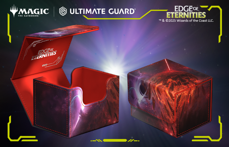 The Sidewinder 100+, made of durable Xenoskin material, holds up to 100 double-sleeved cards in Ultimate Guard sleeves and is the perfect deck box for Commander/EDH decks. Printed in full color with officially licensed artworks from Magic: The Gathering's "Edge of Eternities" set, Kavaron, Memorial World, illustrated by Adam Paquette, Ultimate Guard's Sidewinder deck boxes with their strong magnetic closure and quality microfiber inner lining are a safe and reliable storage place for MTG decks and individual trading cards.