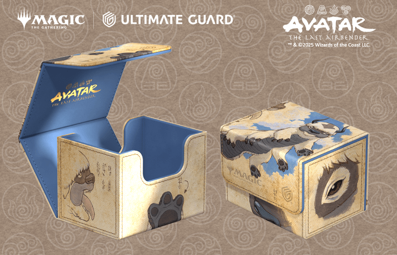 The Sidewinder 100+ made from durable Xenoskin material holds up to 100 double-sleeved cards, which are kept secure in the deck box thanks to a strong magnetic closure and soft microfiber inner lining. The durable, high-quality Xenoskin surface of the Sidewinder is printed in full color with officially licensed artwork from the Magic: The Gathering | Avatar: The Last Airbender set, Appa, Steadfast Guardian Illustrated by Ilse Gort.